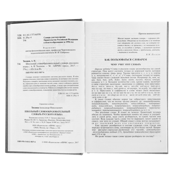 Школьный словообразовательный словарь русского языка