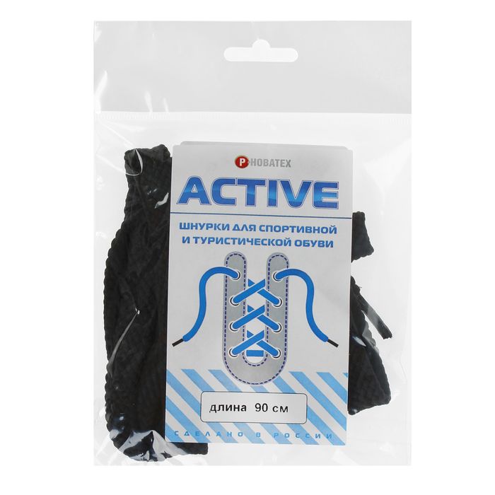 Шнурки для обуви плоские, d=10мм, 90см, цвет чёрный