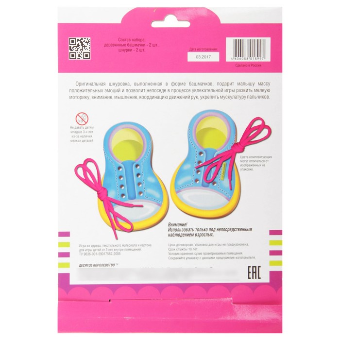 Методы воспитания и образования будут меняться бесконечно, но во все времена постоянным остаётся одно ― радость ребёнка от подаренной ему игрушки. Как известно, счастливая улыбка крохи ― самая большая награда для родителей. Шнуровка деревянная "Башмачки" — отличный подарок вашему малышу.