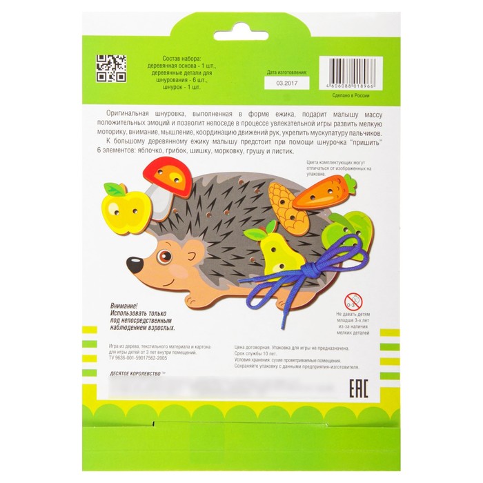 Методы воспитания и образования будут меняться бесконечно, но во все времена постоянным остаётся одно ― радость ребёнка от подаренной ему игрушки. Как известно, счастливая улыбка крохи ― самая большая награда для родителей. Шнуровка деревянная "Ёжик" — отличный подарок вашему малышу.
