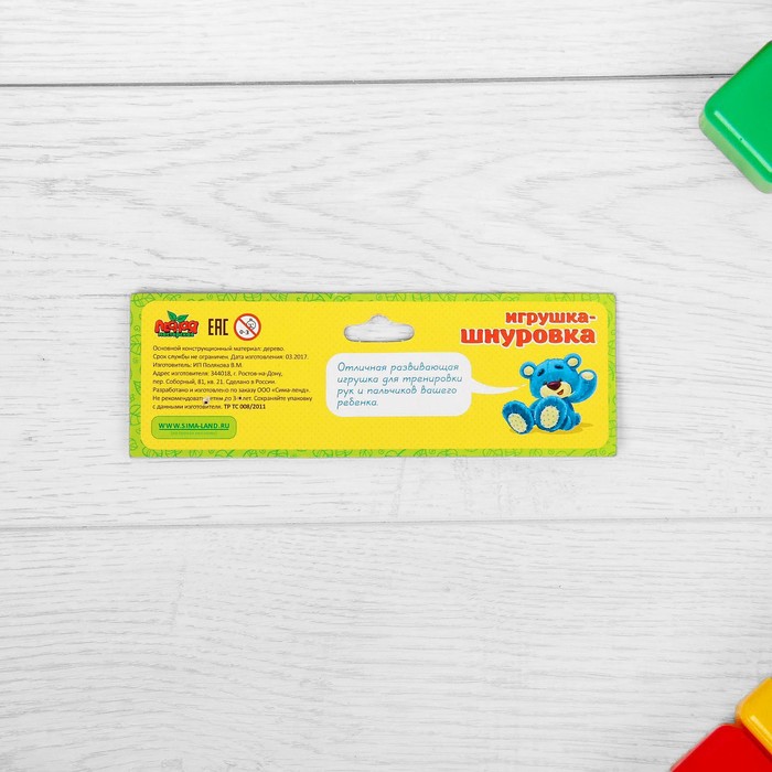 Занятия со шнуровками полезны для раннего развития малыша, ведь он познаёт мир через тактильные ощущения и учится взаимодействовать с предметами. Такое простое действие, как продевание верёвки через отверстия, поможет развить моторику и координацию. Задача проста: нужно присоединить маленькие детали к большой основе, самостоятельно подобрав правильное местоположение. Так малыш научится различать формы и размеры, получит полезнейший навык шнурования.