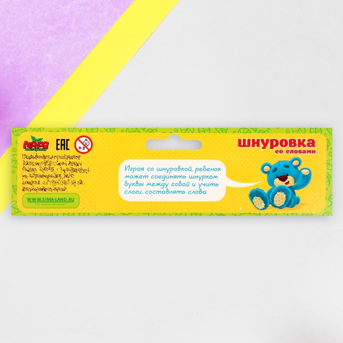 Шнурование доски можно совместить с изучением слогов и основ чтения: продевайте шнурок, связывайте им части слова и проговаривайте вслух получившиеся сочетания.