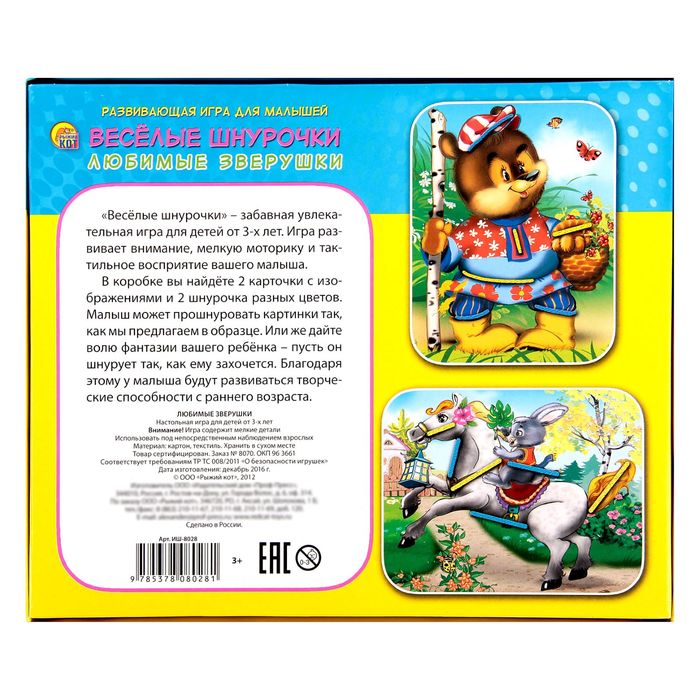 Шнуровка "Любимые зверушки"