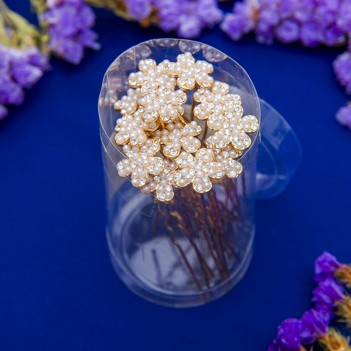 Шпилька для волос "Дафна", цветок, жемчужинки
