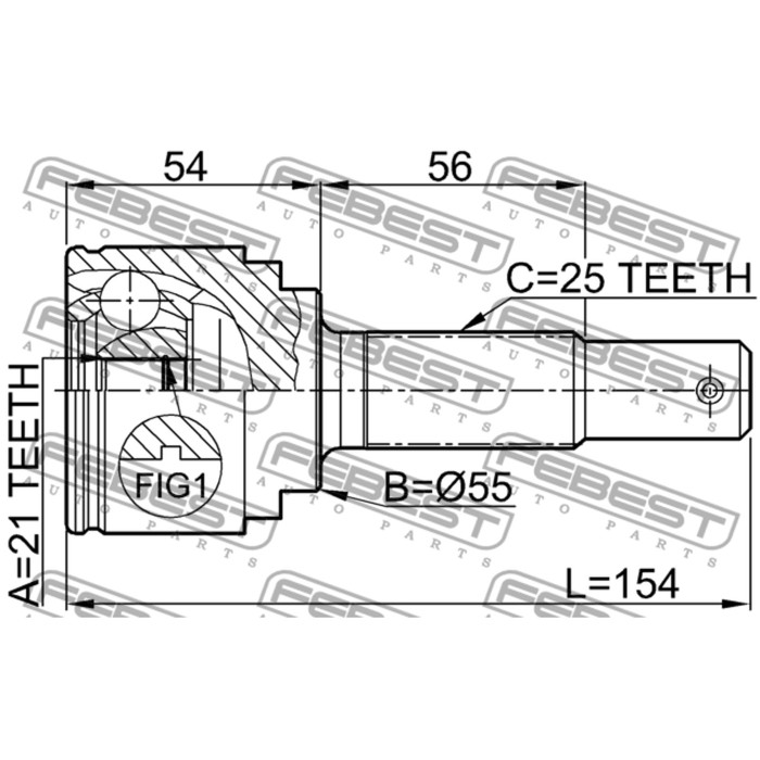 Шрус наружный 21x55x25 febest 0210-qg15