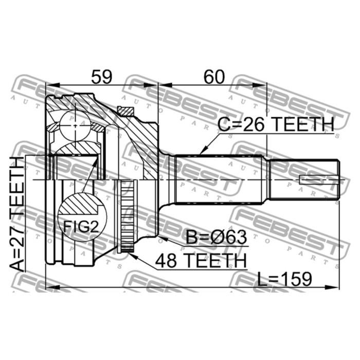 Шрус наружный 27x63.3x26 febest 0110-acv40a48