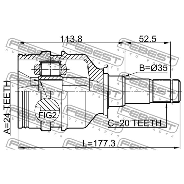 Шрус внутренний левый 24x35x20 febest 0111-220lh