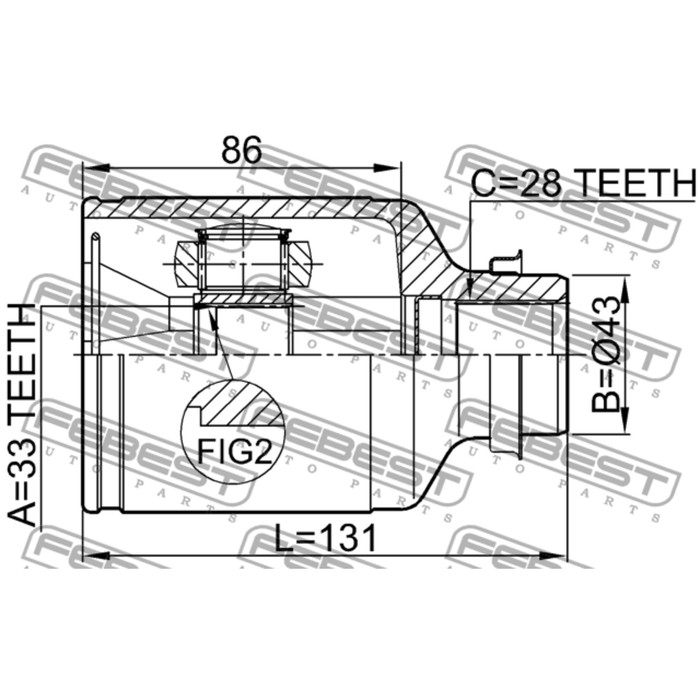 Шрус внутренний правый 33x43x28 febest 0511-m6atrh