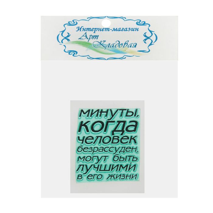 Обратите внимание на этот штамп "Минуты, когда человек безрассуден"" 3,2х3,5 см (STAMP683), который выполнен из высококачественного силикона, благодаря чему оттиски получаются красивыми и чёткими.