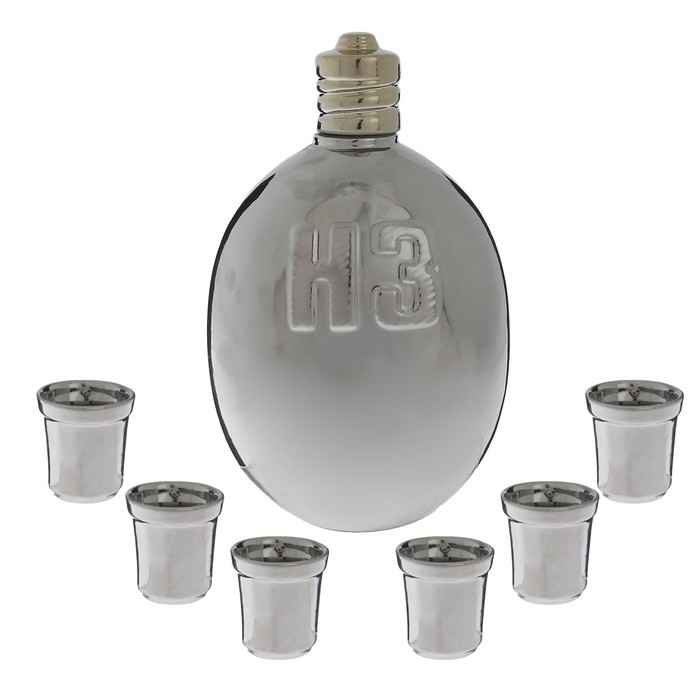 Штоф с рюмками "Фляга" серебро, 7 предметов, 1,5 л/ 0,05 л