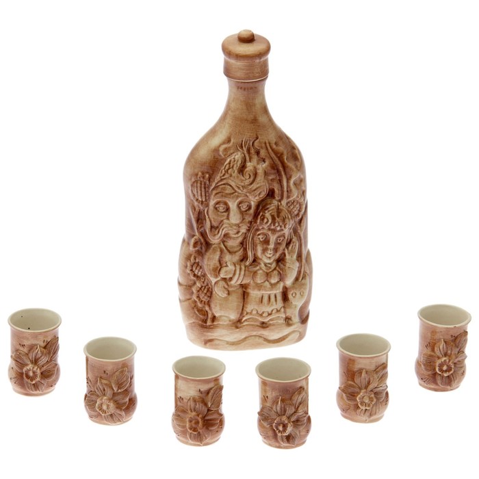 Штоф — это сосуд для крепких спиртных напитков. Он предназначен для хранения вина, водки, коньяка и настойки. К нему прилагаются оригинальные рюмки соответствующей тематики.Набор изготовлен из керамики — прочного материала, способного сохранять температуру жидкости до 4 часов, поэтому вы сможете наслаждаться охлаждёнными напитками даже во время долгих застолий.