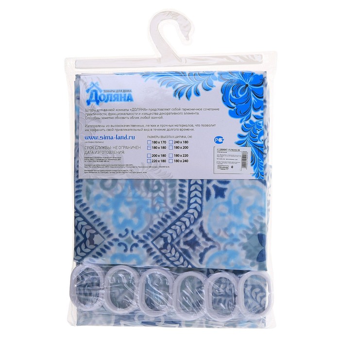 В комплекте к шторке идут специальные кольца, которые позволят легко и без усилий подвесить её на стандартную перекладину любого диаметра.