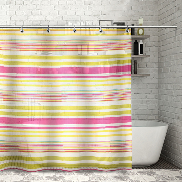 Штора для ванной "Полоска" 180х180 см полиэстер, цвет жёлто-розовый