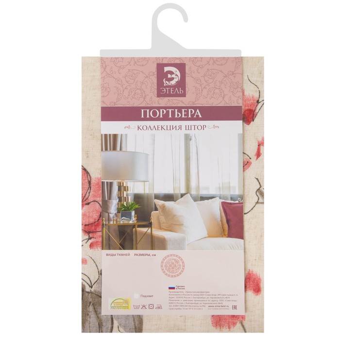 Штора портьерная "Этель" 145х280, Японское соцветие, полулён, 15% лён, 85% п/э