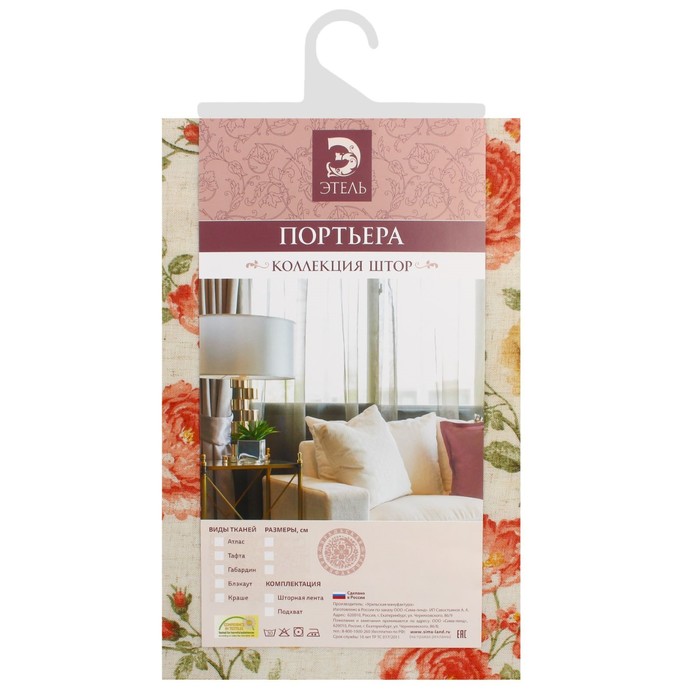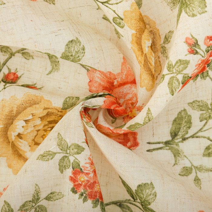 Штора портьерная "Этель" 290х280, Розовые пионы, полулён, 15% лён, 85% п/э