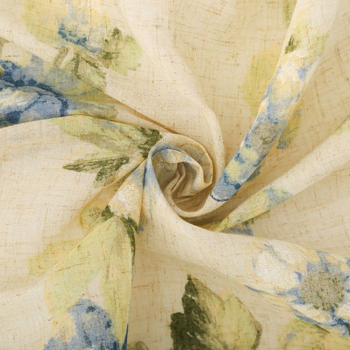 Штора портьерная "Этель" 290х280, Синие пионы, полулён, 15% лён, 85% п/э