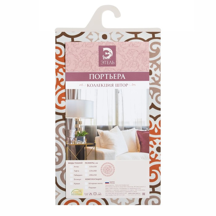 Штора портьерная "Этель" Дамаск цвет бежевый 130х250 см, блэкаут, 100% п/э