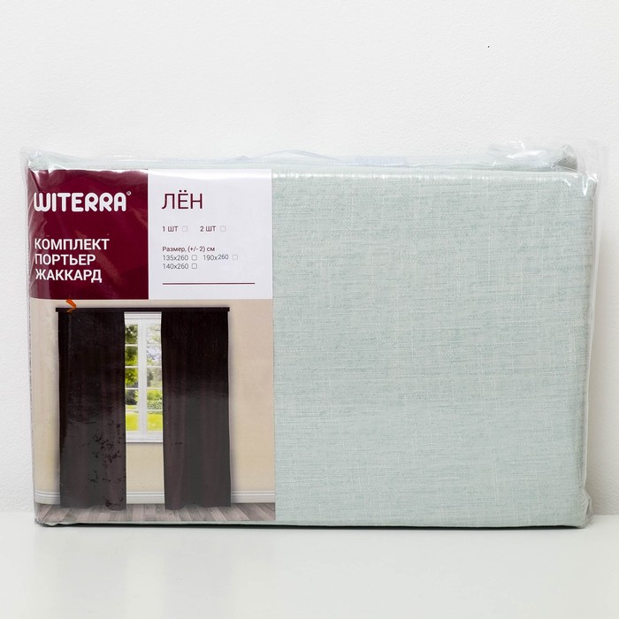 Шторы портьерные жаккард "Лен" фисташка 190х260 см, 2шт/компл.100% п/э