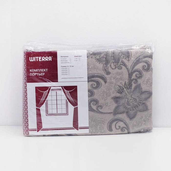 Шторы портьерные жаккард Восточный цветок стальной 190*260 2шт, 190 г/м2, 100% полиэстер