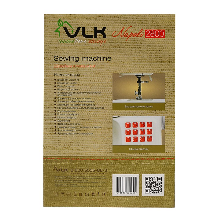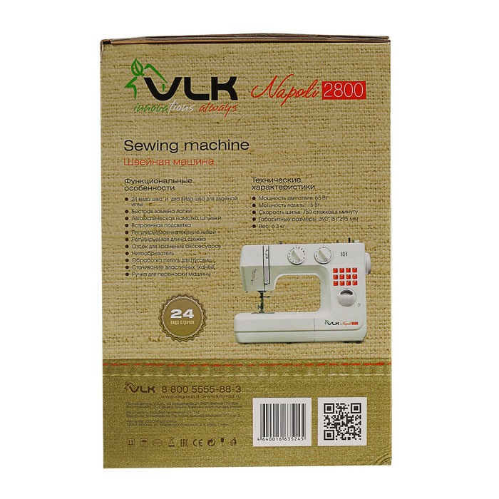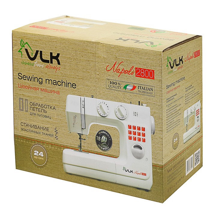 Швейная машина VLK Napoli 2800, 24 вида строчки, 65 Вт, адаптер питания 12 В, белая