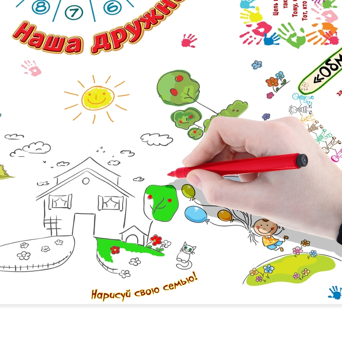 Скатерть бумажная и фломастеры "Наша дружная семья"