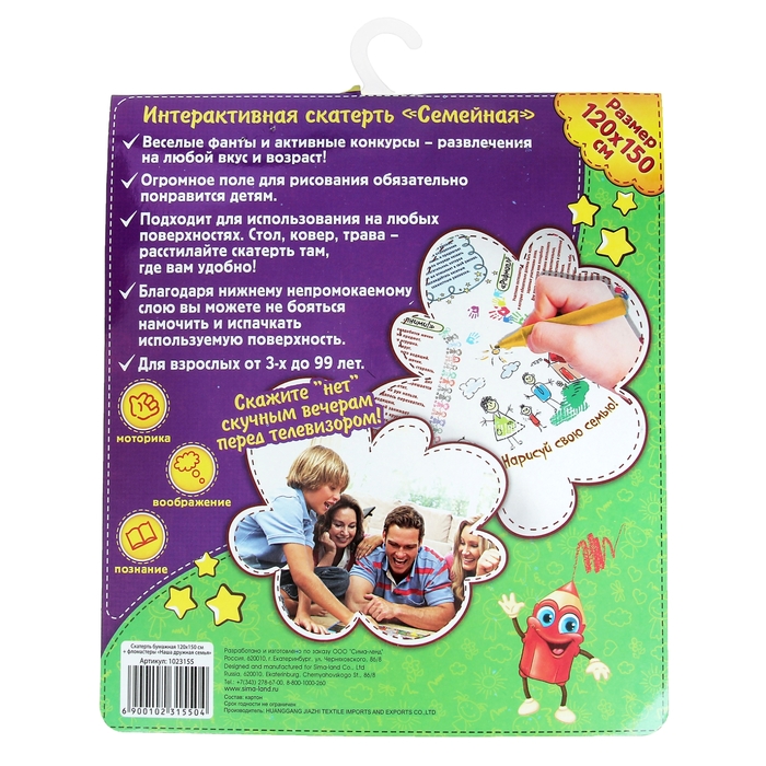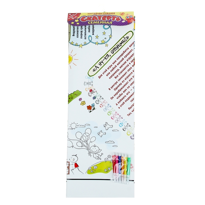 Хотите весело и интересно провести время всей семьей, но не знаете, чем себя занять? Вместо того чтобы ломать голову, возьмите скатерть "Наша дружная семья". Она поможет создать веселую и позитивную атмосферу, подскажет, чем развлечь и взрослых, и детей, и заглянувших на огонек соседей. В комплекте идут фломастеры, которые нужны для большинства игр, представленных на скатерти.