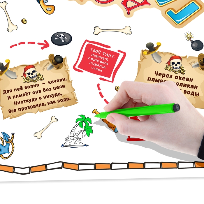 - уникальный пиратский дизайн с фантами и веселыми загадками;
