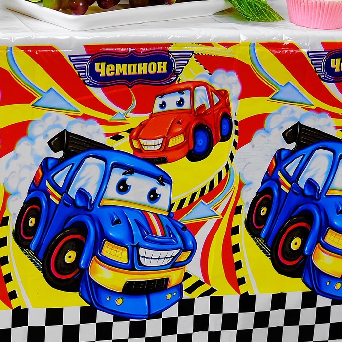 Своим веселым изображением Скатерть "Чемпион" поднимет настроение всем друзьям именинника и станет незаменимым помощником для любой мамы. Используйте её вместе с одноразовой посудой, а в конце вечера просто возьмите скатерть за уголки и свяжите их вместе со всем содержимым.