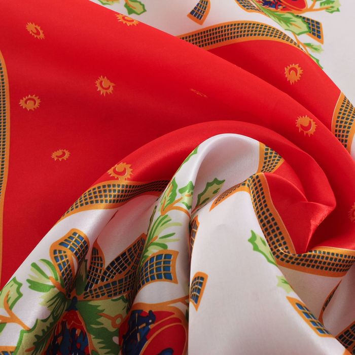 Скатерть украсит праздничный интерьер. Изделия с эксклюзивным принтом сшито из удивительно практичного полиэстера. Этот материал обладает высокой износостойкостью и на ура справляется с первостепенными задачами: