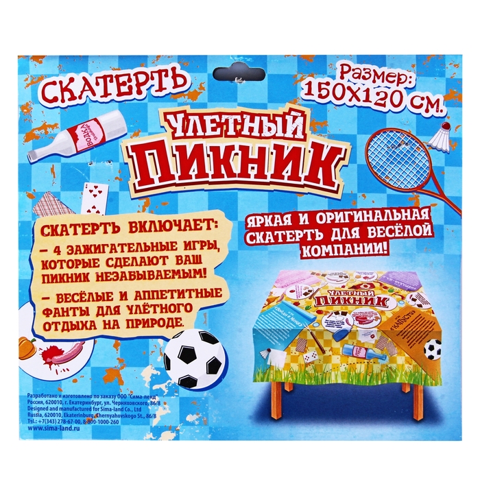 Хотите весело и интересно провести отдых на природе, но не знаете, чем себя занять? Вместо того чтобы ломать голову, возьмите скатерть "Улетный пикник". Она поможет создать веселую и позитивную атмосферу, сплотит большую компанию, подскажет, чем себя развлечь.
