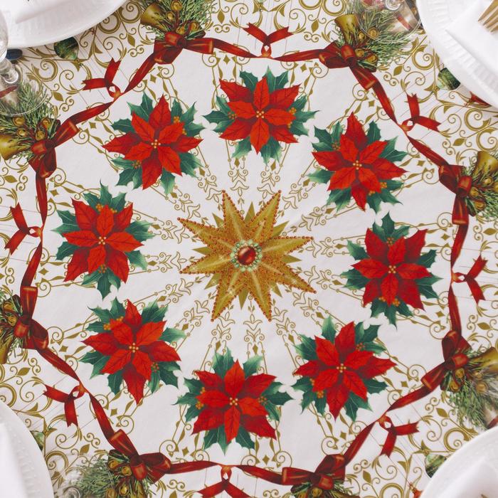 Скатерть круглая Этель "Новогодние игрушки" d = 160 см, 100 % хлопок