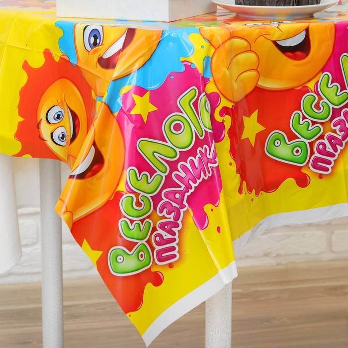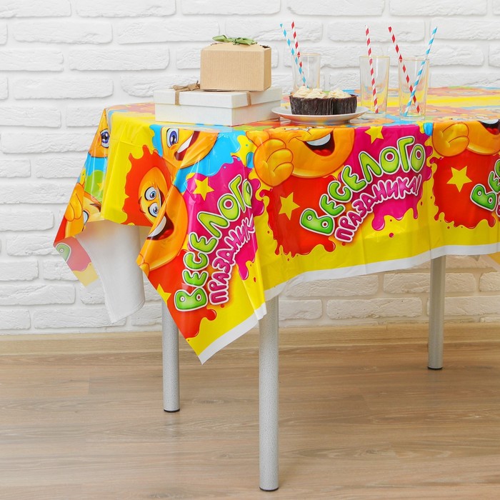 Скатерть "Веселого праздника" — отличный вариант украшения стола. Она задаст тон остальным элементам сервировки и добавит яркие нотки всей композиции. Используйте её вместе с одноразовой посудой, а в конце вечера просто возьмите скатерть за уголки и завяжите её вместе со всем содержимым. Удобство в использовании, красочные и стильные принты — вот главные качества этого изделия!