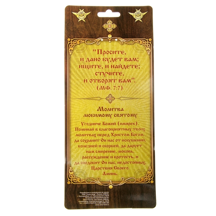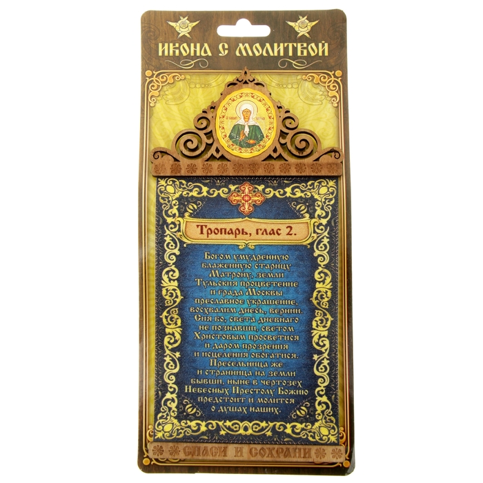 Скрижаль на магните "Тропарь Матроны Московской" с иконой Матроны Московской изготовлено из холста с нанесенным полноцветным изображением и приклеенным к двум деревянным подвесам с ажурным орнаментом. На обратной стороне имеется магнит. На верхнем подвесе вклеена фольгированная икона, которая полностью соответствует канонам Православной Церкви. Панно упаковано на оригинальной подложке. Такое панно-магнит привнесет в Ваш дом согласие и мир и будет прекрасным подарком, оберегающим близких Вам людей.