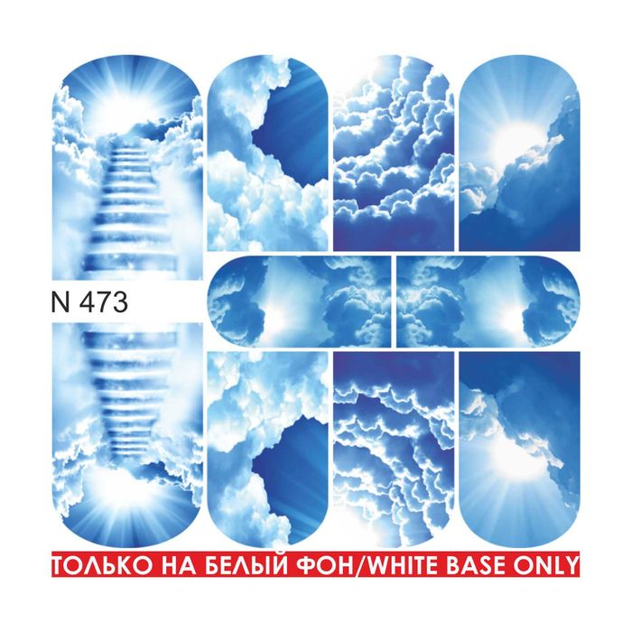 Слайдер-дизайн для маникюра "Облака", N473, цвет бело-голубой
