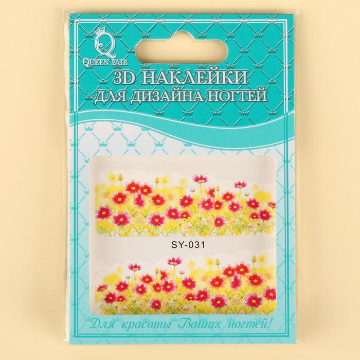 Слайдер-дизайн для ногтей "Цветочный пейзаж", цвет белый/жёлтый/розовый