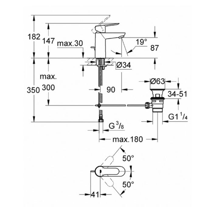 Смеситель для раковины GROHE BauEdge, сливной гарнитур