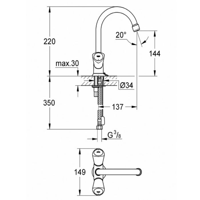 Смеситель для раковины GROHE Costa S, высокий излив, цепочка отлично дополнит существующую сантехнику. Внутренняя конструкция гарантирует бесшумную работу и имеет долгий срок службы. Данная модель устойчива к коррозии, различным механическим повреждениям, перепадам температуры. Аксессуар впишется в любой интерьер благодаря стильному внешнему виду.