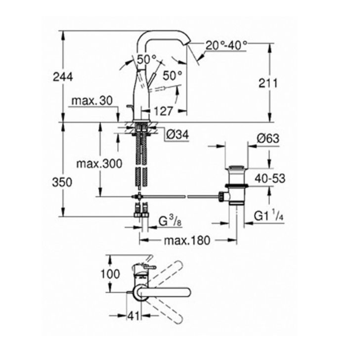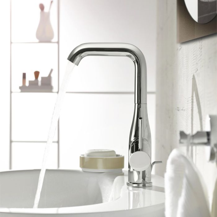 Смеситель для раковины GROHE Essence+, высокий излив отлично дополнит существующую сантехнику. Внутренняя конструкция гарантирует бесшумную работу и имеет долгий срок службы. Данная модель устойчива к коррозии, различным механическим повреждениям, перепадам температуры. Аксессуар впишется в любой интерьер благодаря стильному внешнему виду.
