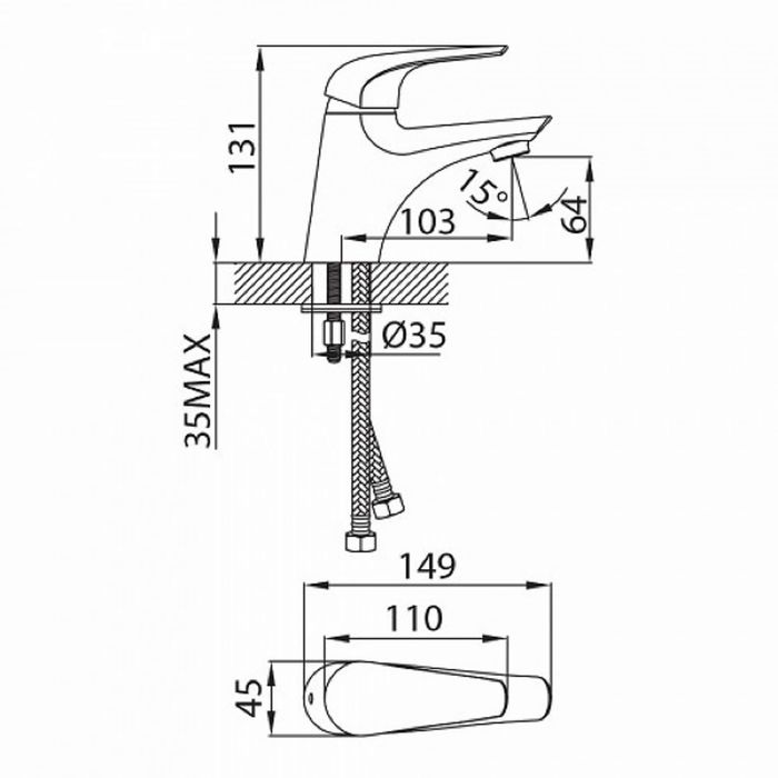 | Длина излива, мм | 103 |