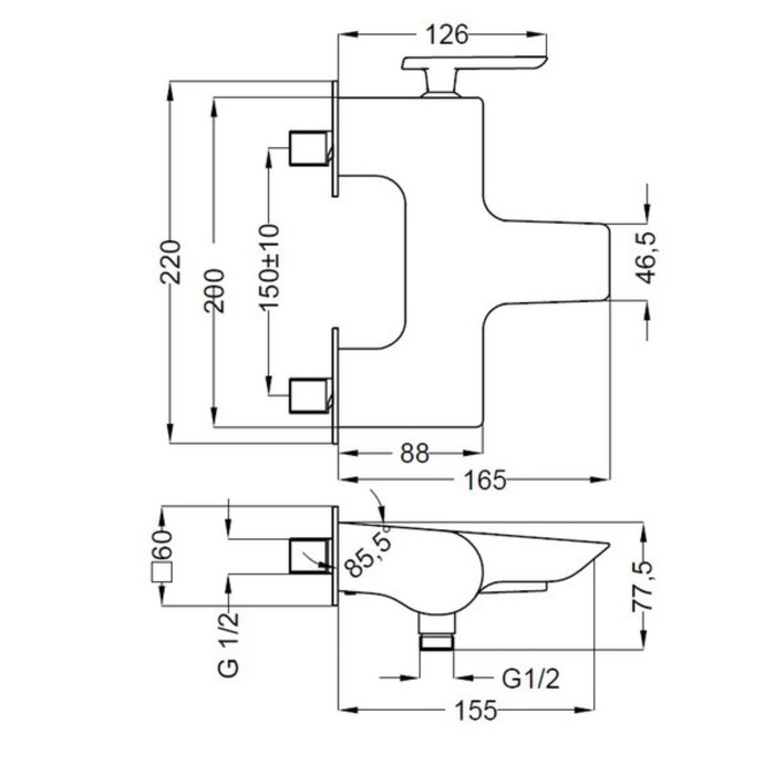 Смеситель для ванны Zipponi LINE, 1-рычажный, цвет хром