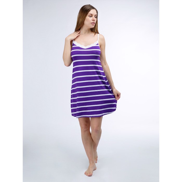 Сорочка ночная женская, пурпурно-белые полоски, 52 размер