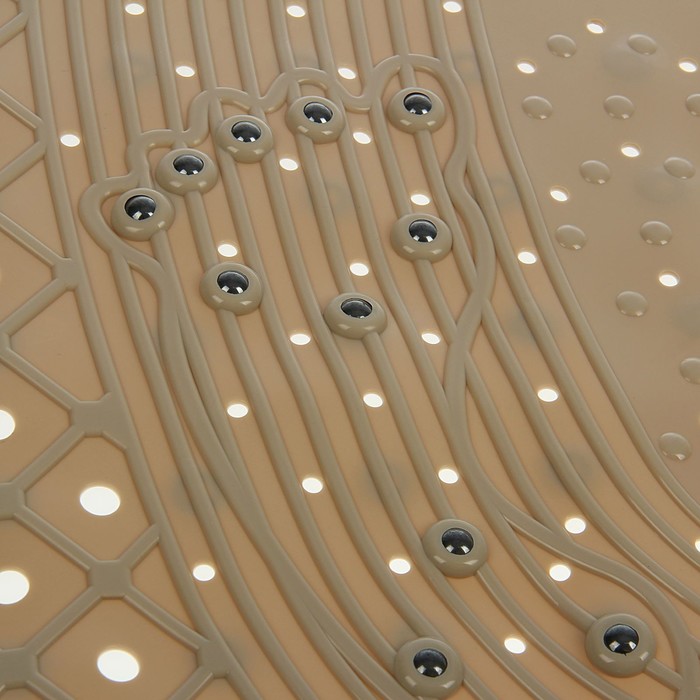 Изделие стелится в ванну или душевую кабину и массажирует стопы, снимает усталость. Ходьба по коврику создаст ощущение прогулки по морскому берегу. Массаж благотворно влияет на общее состояние организма и кровообращение в ногах.