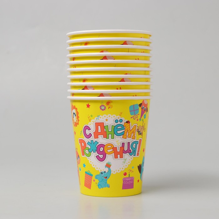 Стакан бумажный "С Днем рождения" животные, с подписью (270 мл)