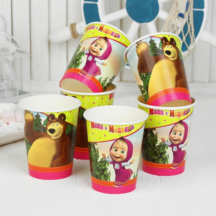Стаканы бумажные "Маша и Медведь", 250 мл, набор 6 шт.