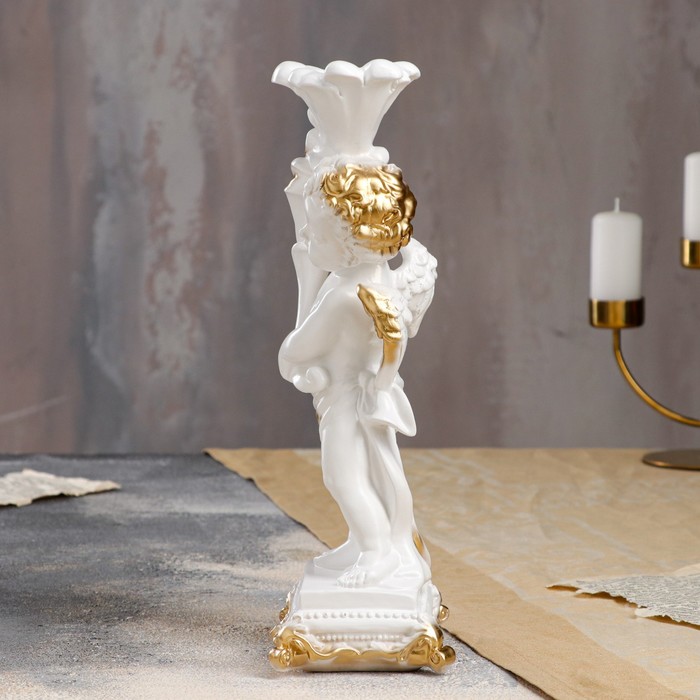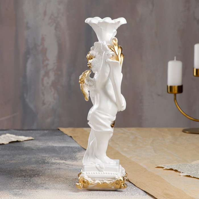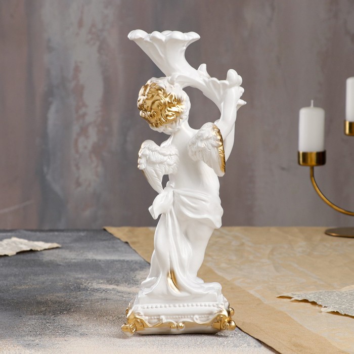 Статуэтка "Ангел с подсвечником" бело-золотой