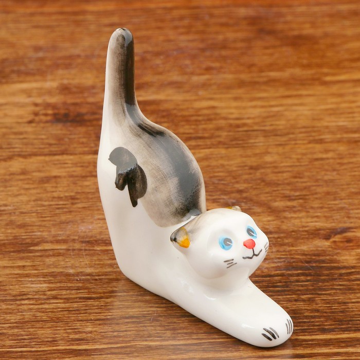 Статуэтка фарфоровая "Кошка чёрная", подставка для колец, 8 см