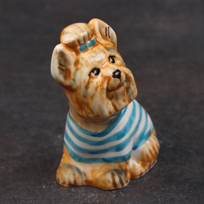 Статуэтка фарфоровая "Йоркширский терьер маечка синяя", 8 см, авторская роспись