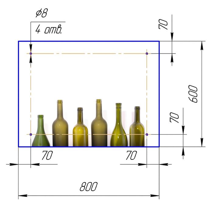 Стеклянный фартук закаленное стекло М1 "Бар", 600х800х4
