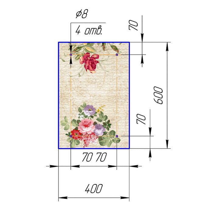 Стеклянный фартук закаленное стекло М1 "Цветы", 600х400х4