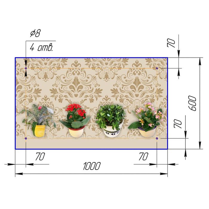Стеклянный фартук закаленное стекло М1 "Цветы в горшках", 600х1000х4